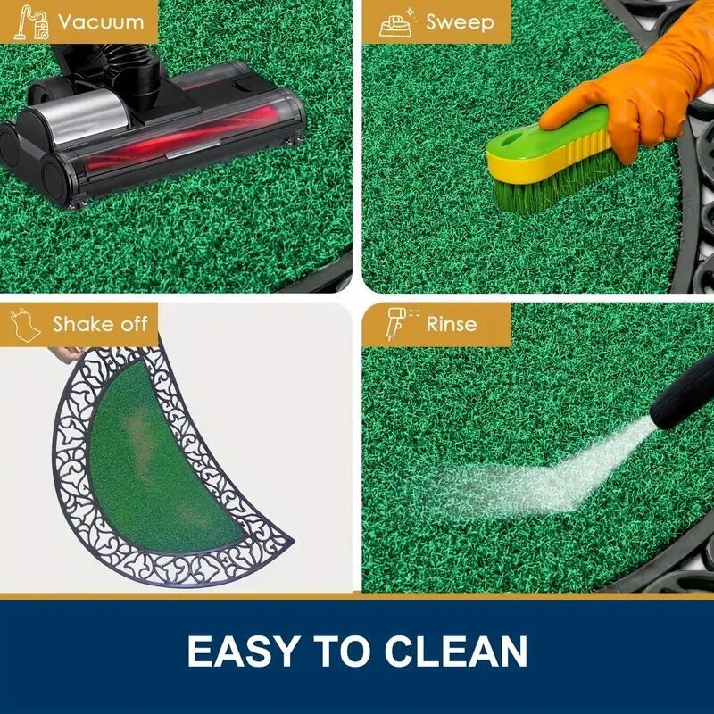 屋外ドアマット 玄関マット 半円型 芝生調 ラバー エレガント 可愛い おしゃれ インテリア 北欧 洋風 泥落とし 汚れ取り 吸水性 水切り 滑り止め 洗える 手洗い可 室内 エントランス ラウンド ふち取り グリーン ゴム PVC 44.96×74.93cm | Calm+(カームプラス) - 北欧風ナチュラルインテリア・モダン家具専門店