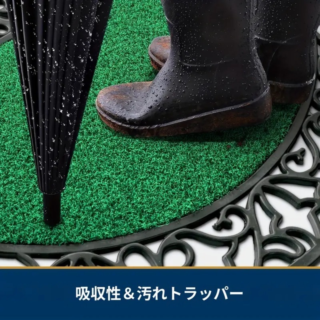 芝生調のラバー素材が、泥や汚れをしっかりキャッチし、吸水性も抜群です。
