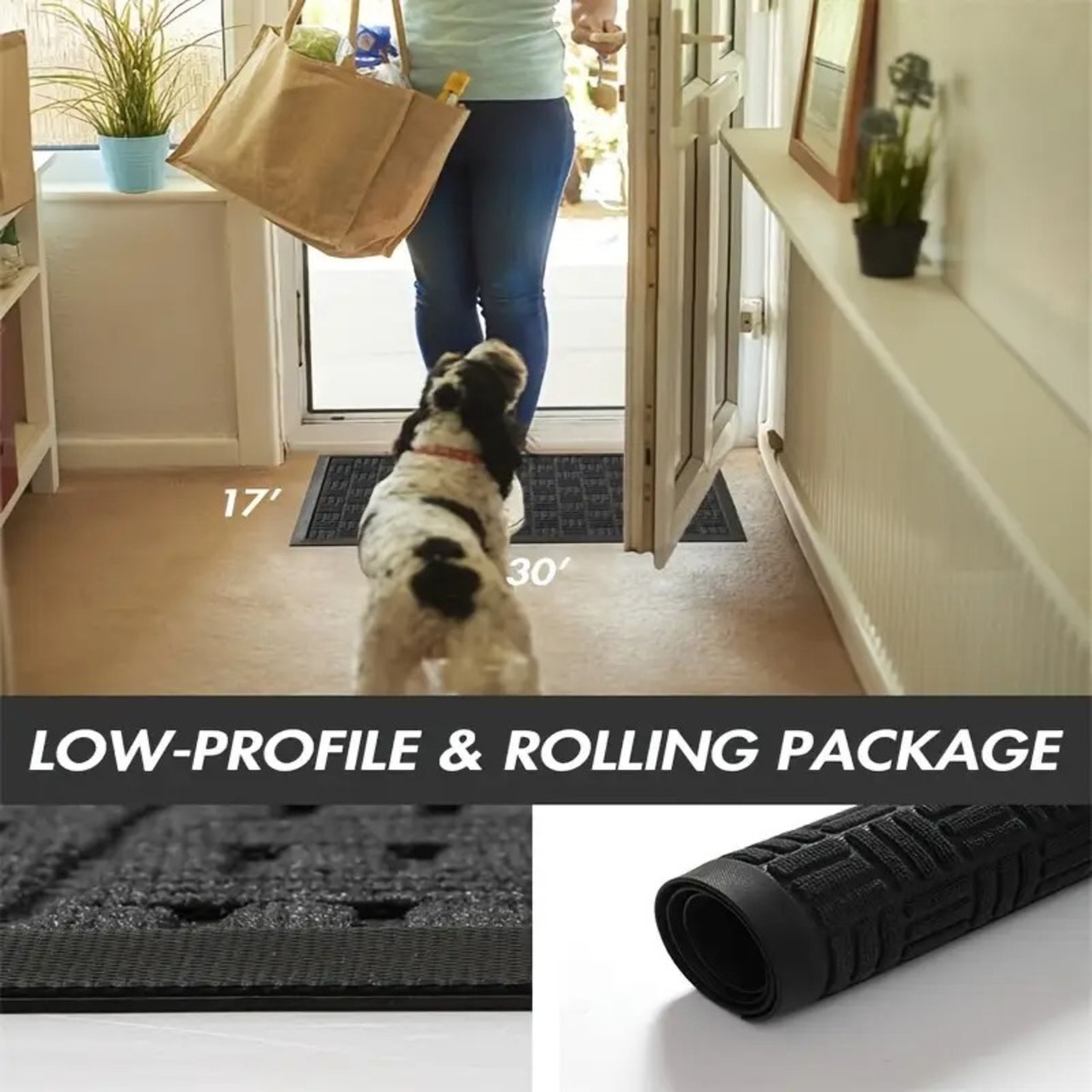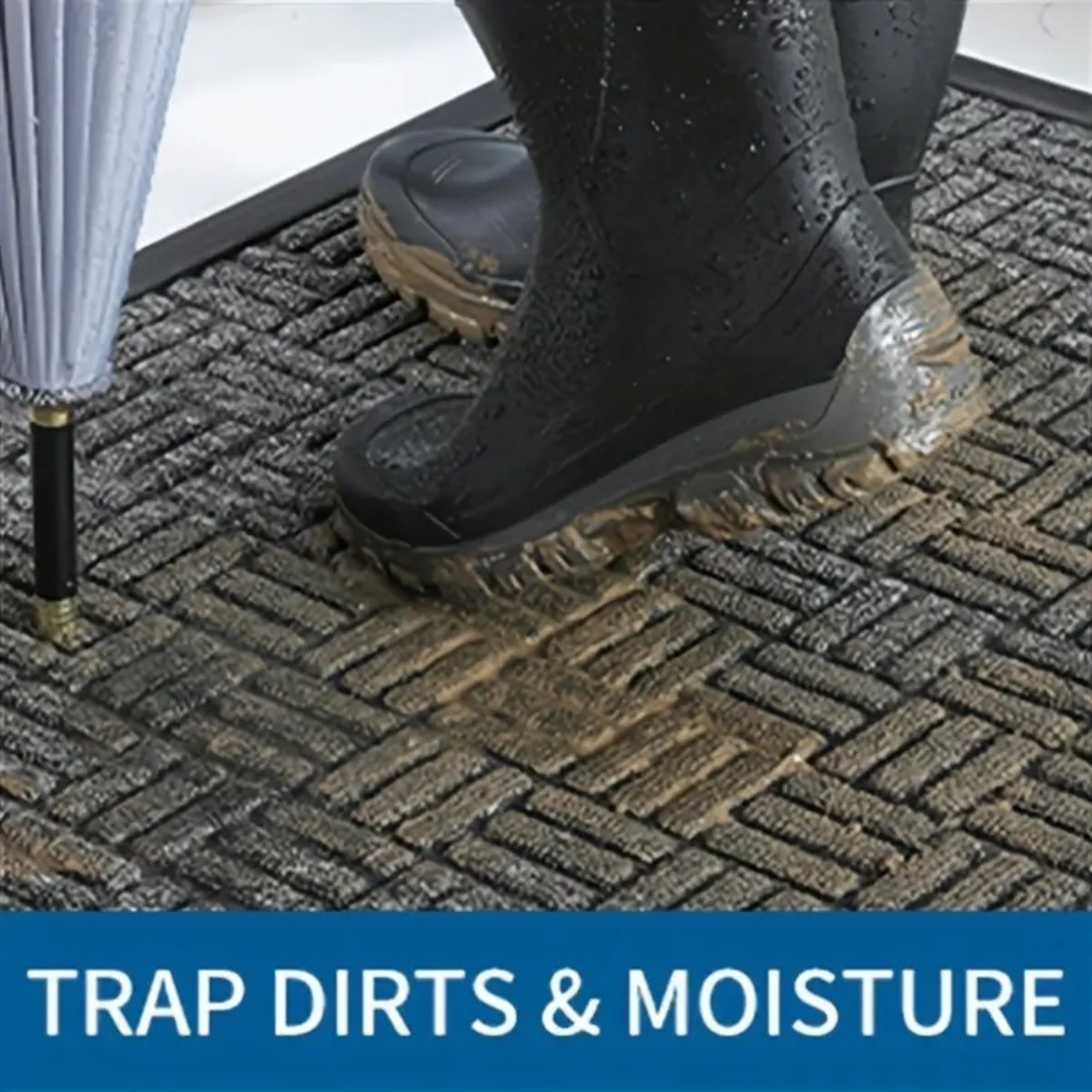 シンプルでモダンなデザインが魅力の屋外ドアマットです。