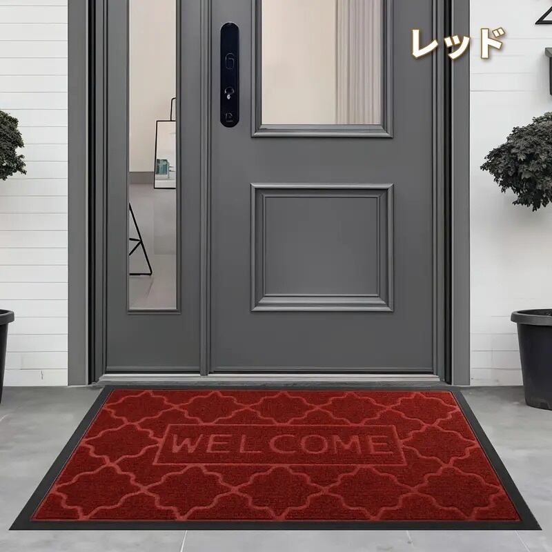 屋外ドアマット 玄関マット ウェルカムサイン ロゴ タイル柄 おしゃれ モダン 可愛い インテリア 北欧 泥落とし 汚れ取り 吸水性 滑り止め 室内 エントランス 洗える 手洗い可 四角 レッド カーキ ダークグレー ラバー ゴム ポリエステル 60×90cm | Calm+(カームプラス) - 北欧風ナチュラルインテリア・モダン家具専門店