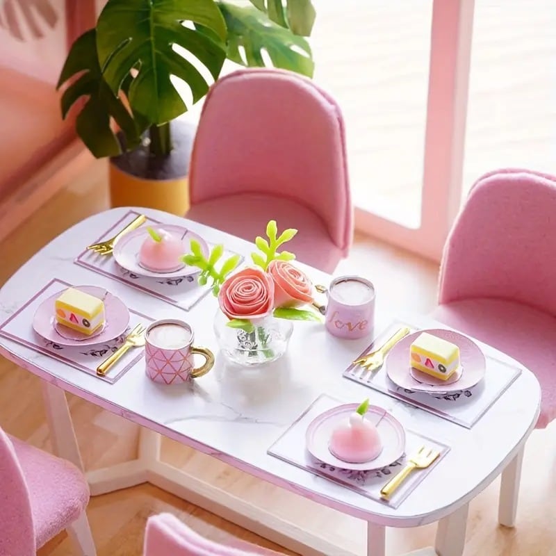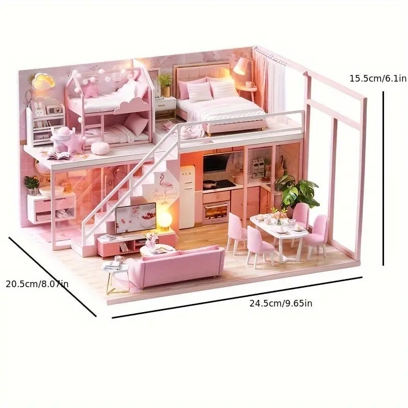 ドールハウス キット DIY アパートハウスモデル ミニチュア アンティーク風 かわいい おしゃれ レトロ ナチュラル レトロ インテリア 北欧 デコレーション クラフト 贈り物 ギフト プレゼント 雑貨 リビング ピンク 24.5×20.5×15.5cm | Calm+(カームプラス) - 北欧風ナチュラルインテリア・モダン家具専門店