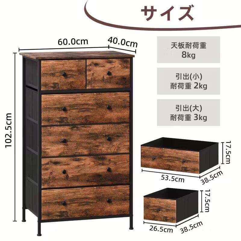 省スペースでありながら大容量の5段6杯の引き出しを備え、衣類収納に最適です。