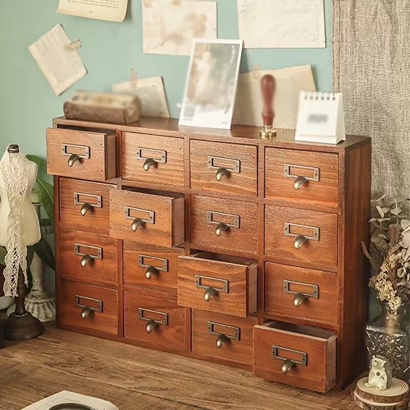 チェスト キャビネット 木目調 ヴィンテージ風 アンティーク調 ナチュラル おしゃれ シンプル 可愛い インテリア 北欧 卓上収納 小物入れ 引き出し 4段16杯 木製 51×10×35cm | Calm+(カームプラス) - 北欧風ナチュラルインテリア・モダン家具専門店