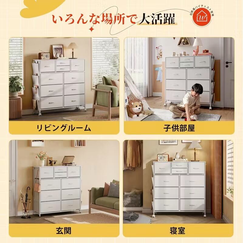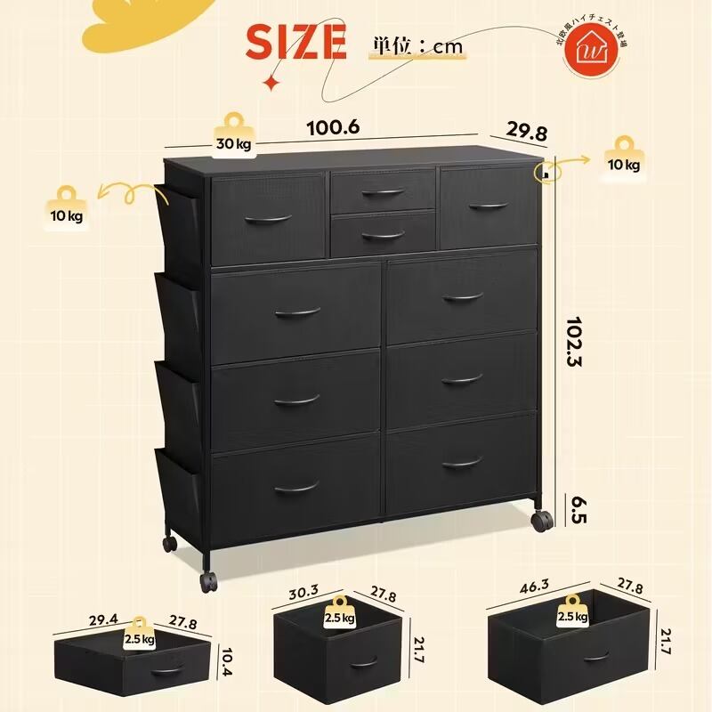 省スペース設計でありながら、4段10杯の引き出しがたっぷりの収納力を提供します。