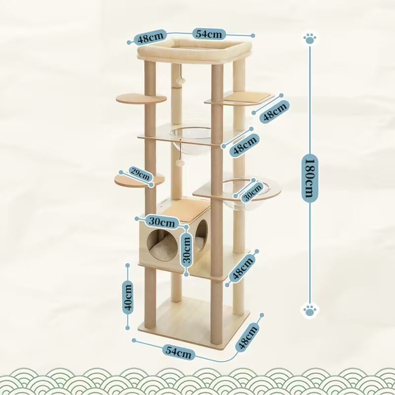 キャットタワー 猫タワー 木目調 大型猫用 据え置き シンプル おしゃれ 可愛い インテリア 北欧 スリム 多頭飼い 見晴らし台 宇宙船 隠れ家 おもちゃ 爪とぎポール 運動不足解消 安定 麻紐 木製 54×48×180cm | Calm+(カームプラス) - 北欧風ナチュラルインテリア・モダン家具専門店
