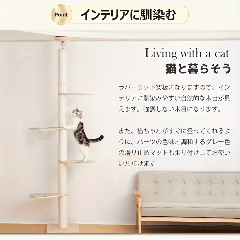 大型猫も安心して遊べる突っ張り式のデザインで、安定感抜群です。
