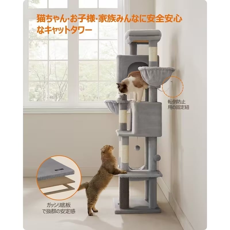 運動不足解消に役立つおもちゃも付いており、猫たちの健康をサポートします。