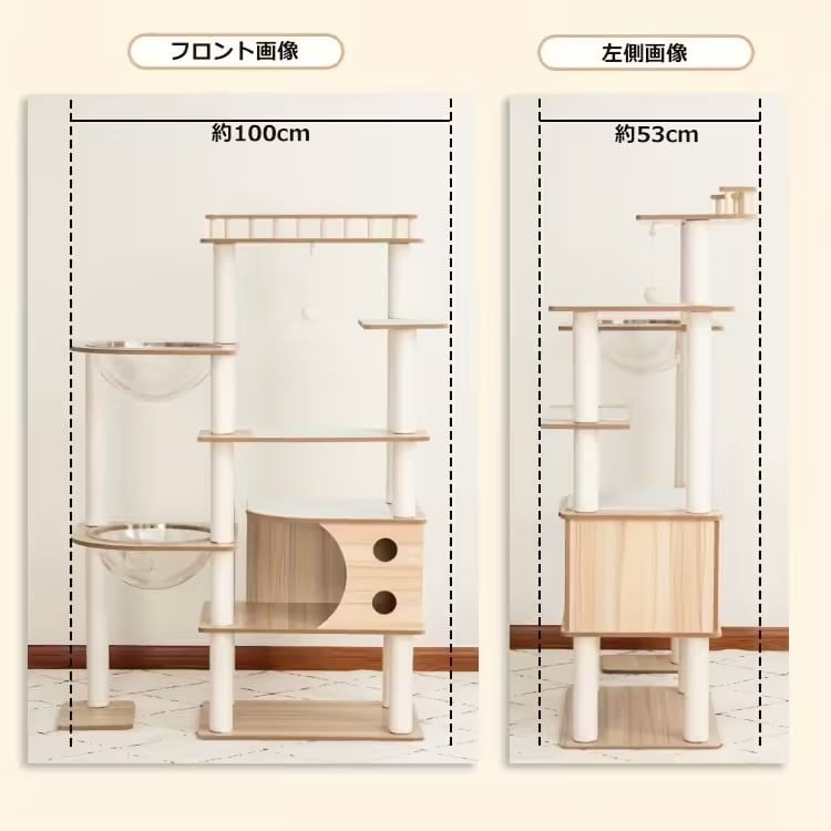 隠れ家や展望台としても楽しめる、猫たちの冒険心を刺激するデザインです。