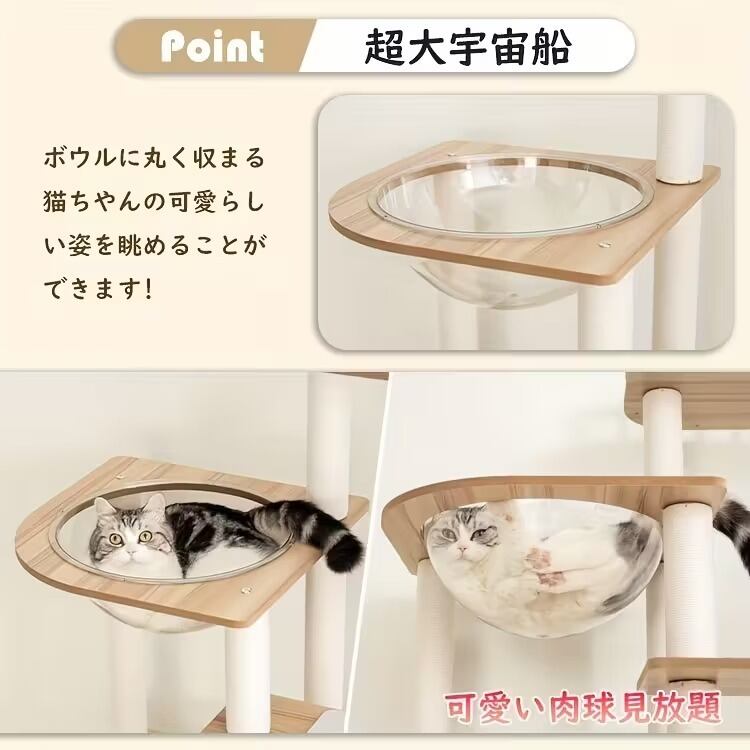 猫たちの夢の国、特大クリアボウル付きキャットタワー。