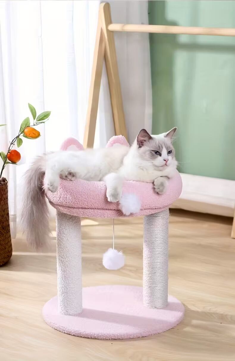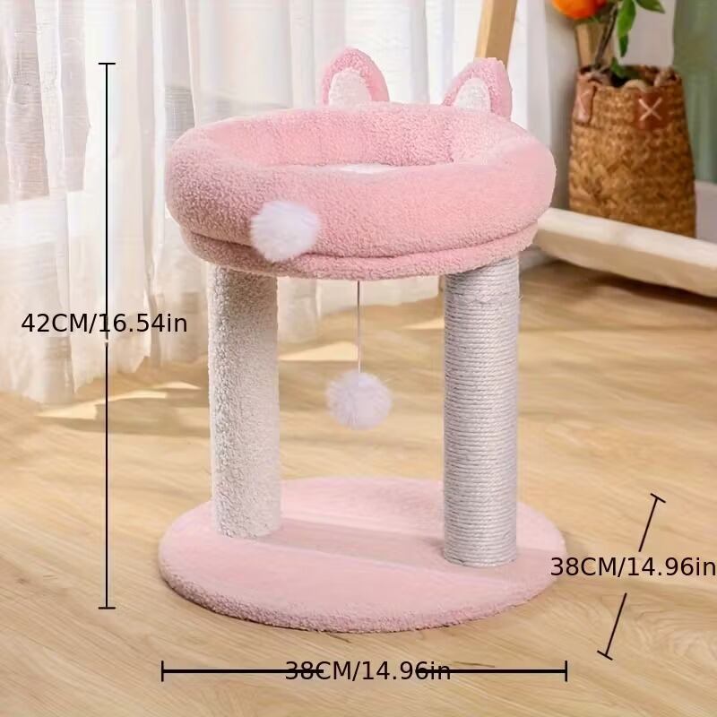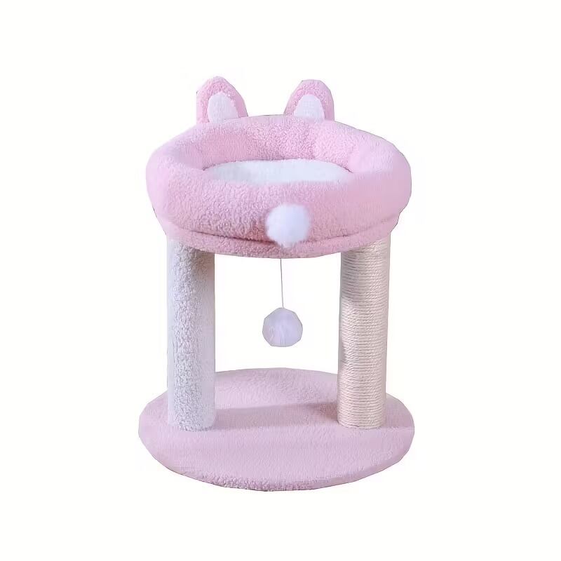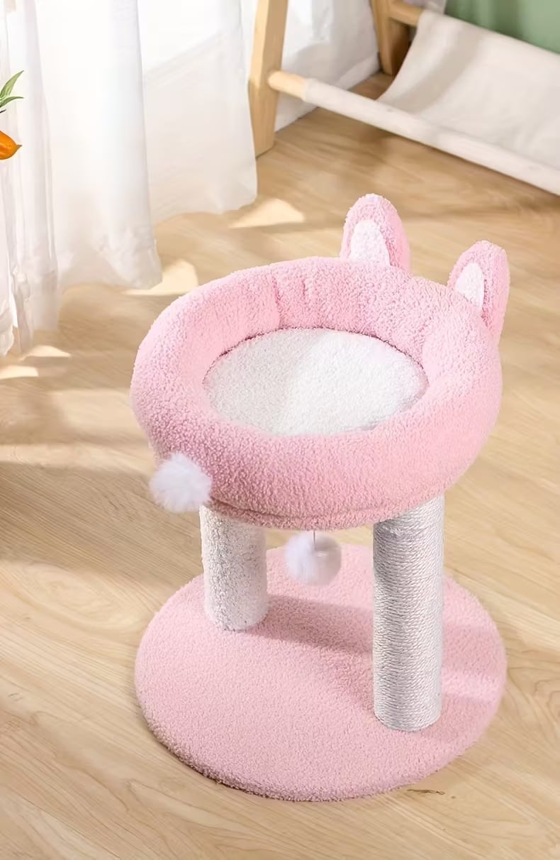 キャットタワー 猫タワー うさぎ型 ふわふわ 小型 可愛い ユニーク おしゃれ インテリア 北欧 据え置き ポンポンおもちゃ 爪とぎ 運動不足解消 省スペース ピンク系 38×38×42cm | Calm+(カームプラス) - 北欧風ナチュラルインテリア・モダン家具専門店
