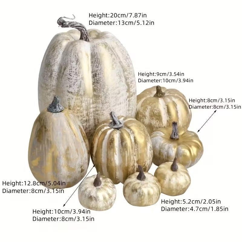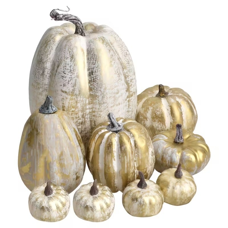 置物 オブジェ ハロウィン雑貨 装飾 カボチャ おしゃれ インテリア 北欧 フェイク リアル パンプキン 9点セット ヴィンテージ風 ゴールド プラスチック 20×13cm | Calm+(カームプラス) - 北欧風ナチュラルインテリア・モダン家具専門店