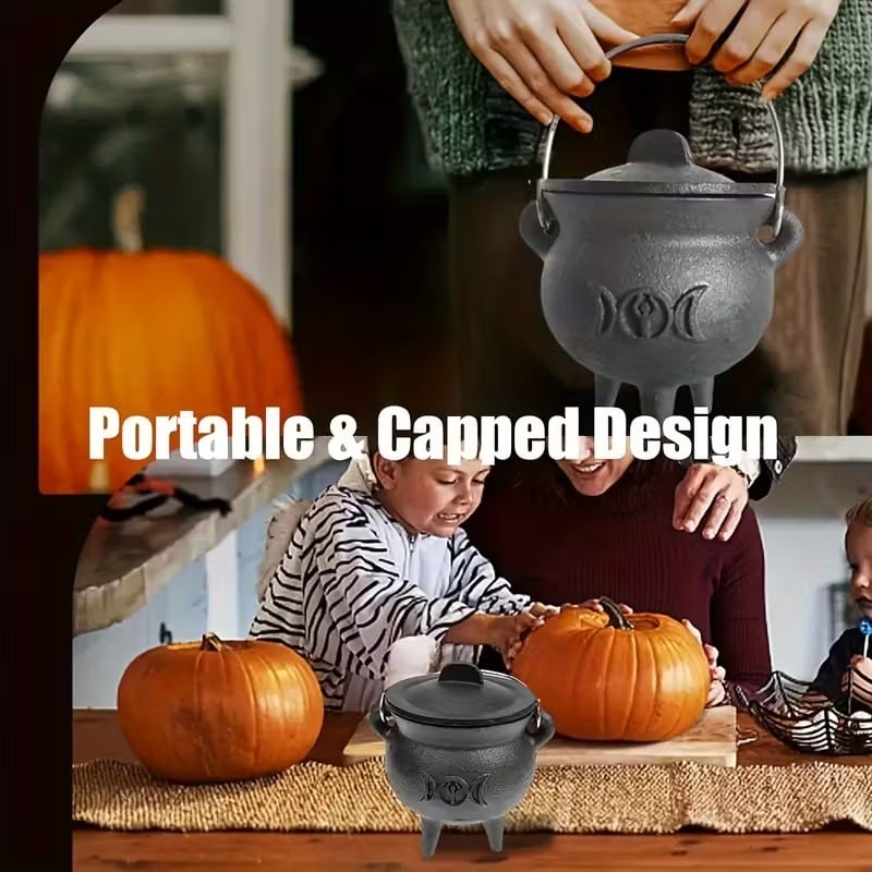 魔女の大釜を思わせるユニークなデザインで、ハロウィンの夜を神秘的に演出する置物です。