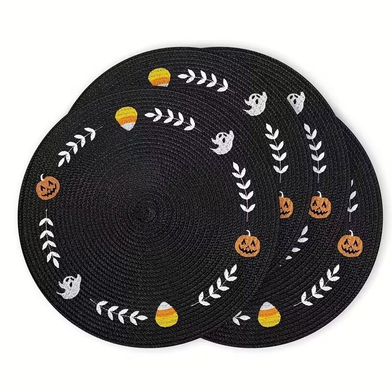 ハロウィン雑貨 テーブル装飾 ランチョンマット ラウンド 4点セット おしゃれ 可愛い インテリア 北欧 カボチャ パンプキン お化け ブラック 丸型 刺繍 ニット編み 直径33cm | Calm+(カームプラス) - 北欧風ナチュラルインテリア・モダン家具専門店