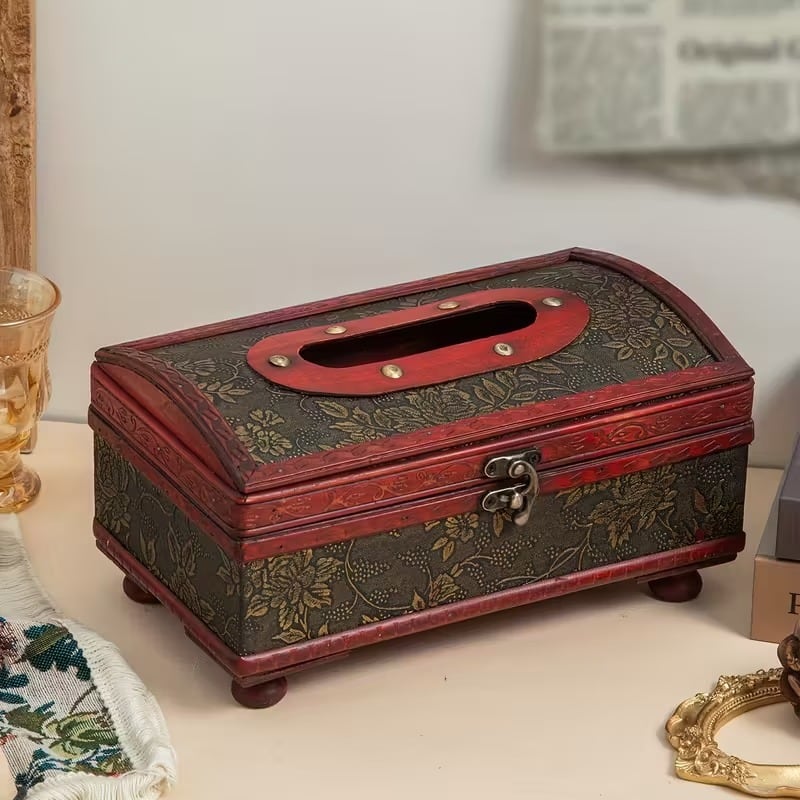 優雅なひとときを演出する、ヴィンテージ風のティッシュボックス。