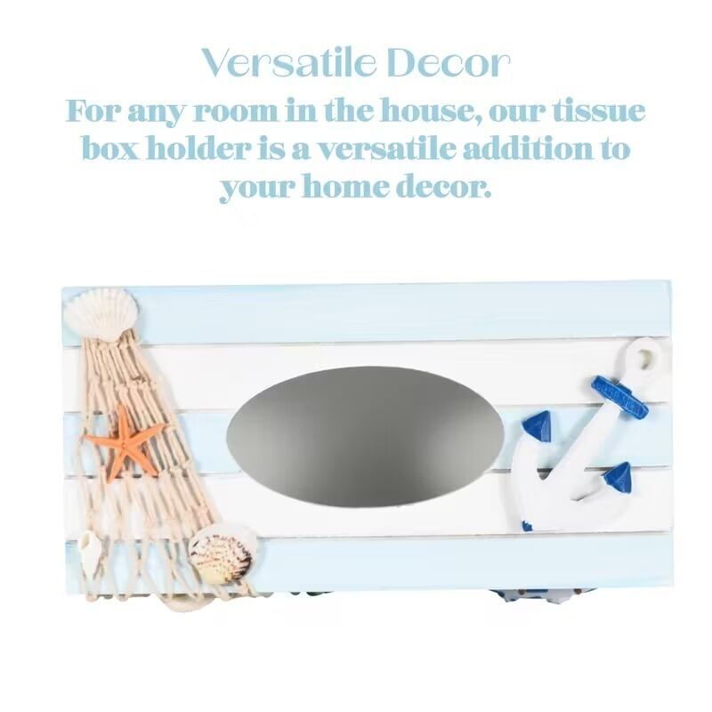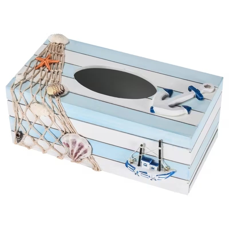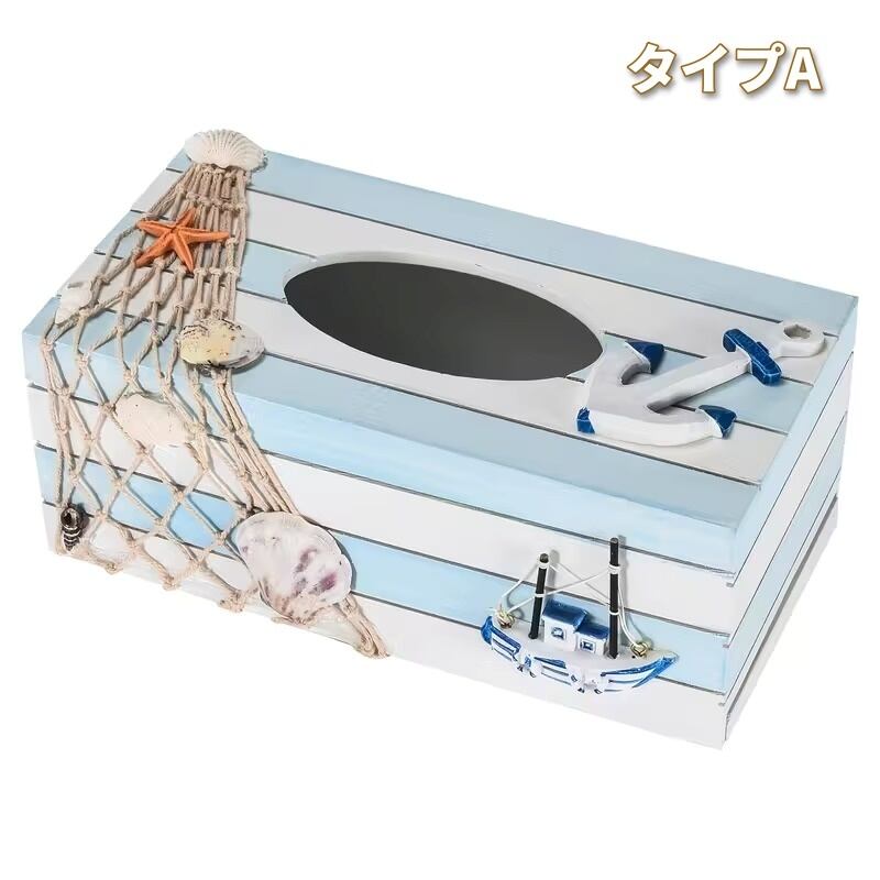 ティッシュボックス マリンテイスト 錨 貝殻 立体装飾 おしゃれ ナチュラル インテリア 北欧 ティッシュケース ホルダー 長方形 木製 23.8×13×9.5cm | Calm+(カームプラス) - 北欧風ナチュラルインテリア・モダン家具専門店