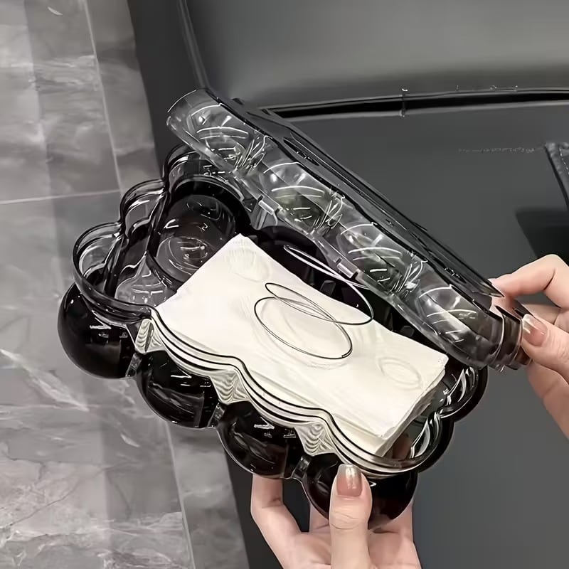 透明感あふれるバブルデザインで、あなたの空間を一瞬でおしゃれに変えるティッシュボックス。