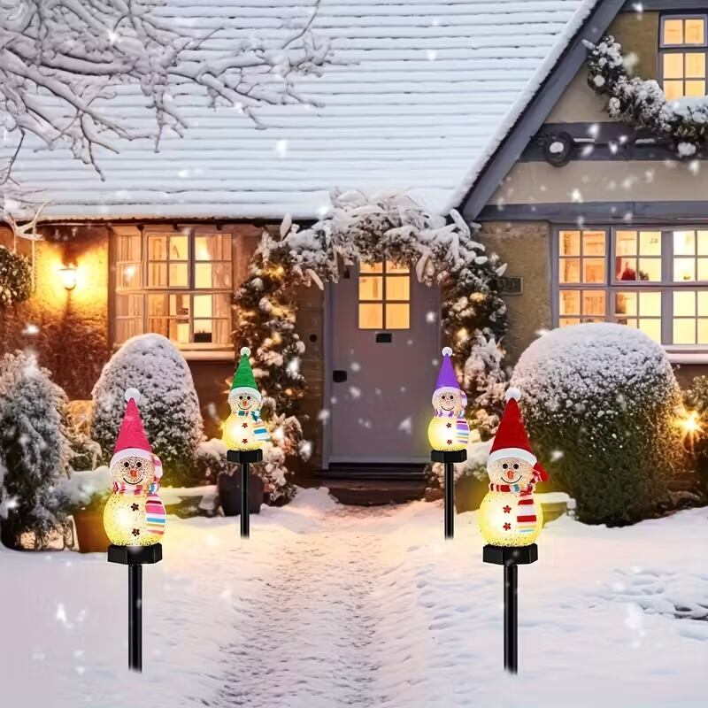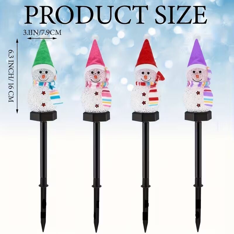 ガーデンライト クリスマス雑貨 スノーマン 4点セット ソーラー充電 可愛い おしゃれ インテリア 北欧 雪だるま 屋外 庭 花壇 冬 ランプ 自動点灯 間接照明 太陽光発電 グリーン レッド ピンク パープル 7.9×16cm
