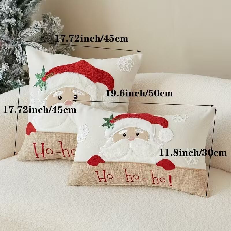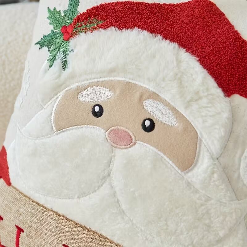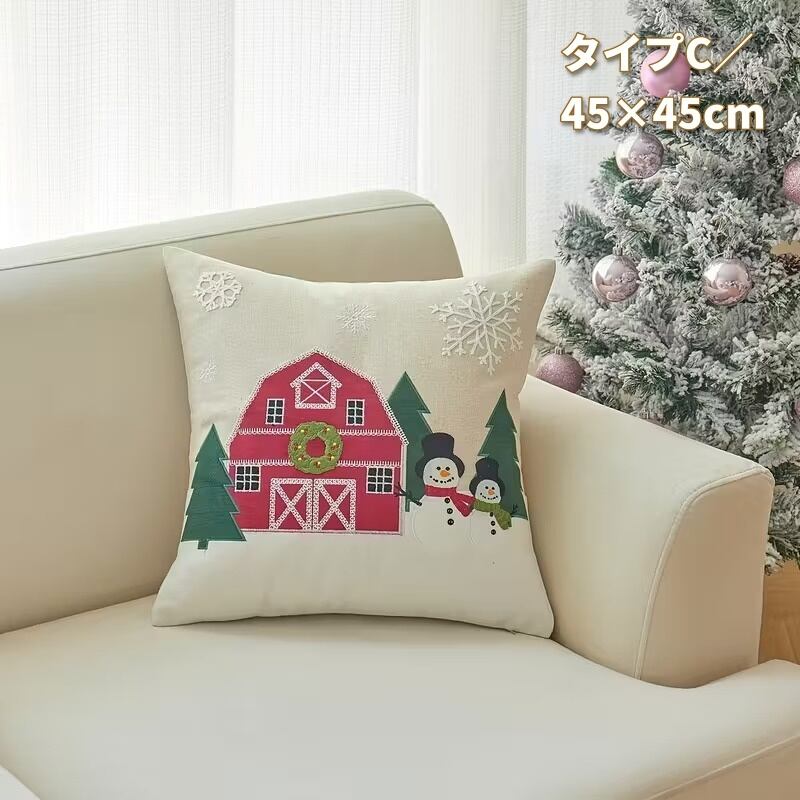 クッションカバー 枕カバー クリスマス雑貨 サンタクロース 雪だるま 可愛い ナチュラル おしゃれ インテリア 北欧 刺繍 雪の結晶 立体的 柔らかい 正方形 長方形 選べる ジッパー式 リネン混 45×45cm 50×30cm