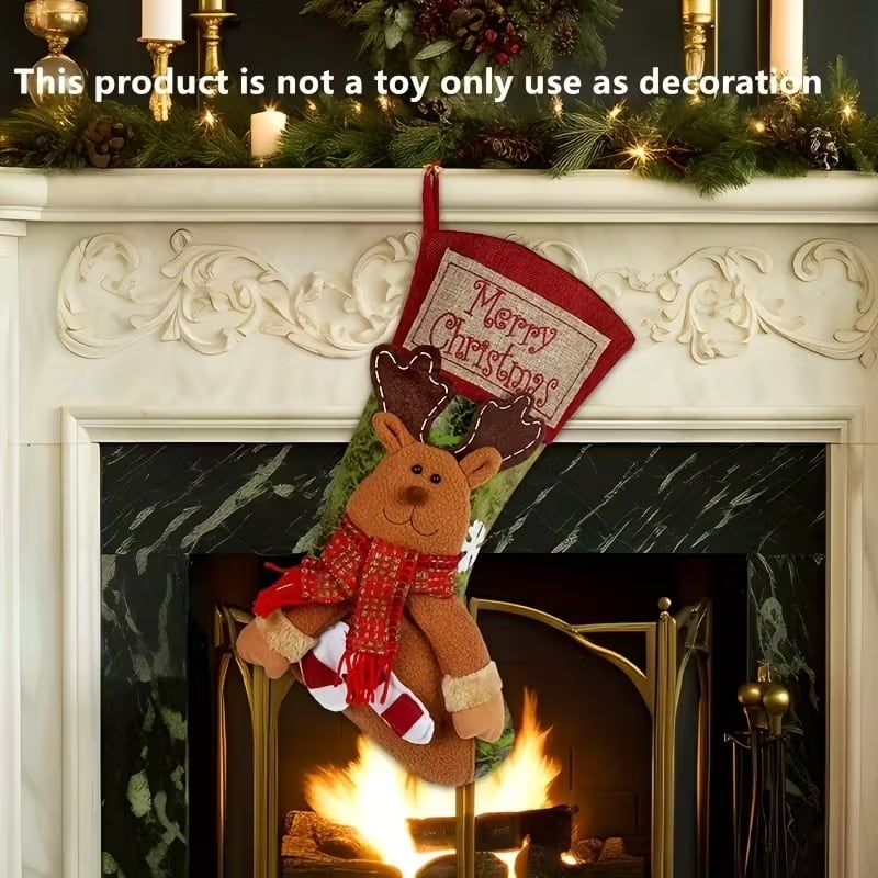 可愛らしい刺繍が施された装飾用靴下の3点セットは、サンタクロース、トナカイ、雪だるまの立体デザインが特徴です。