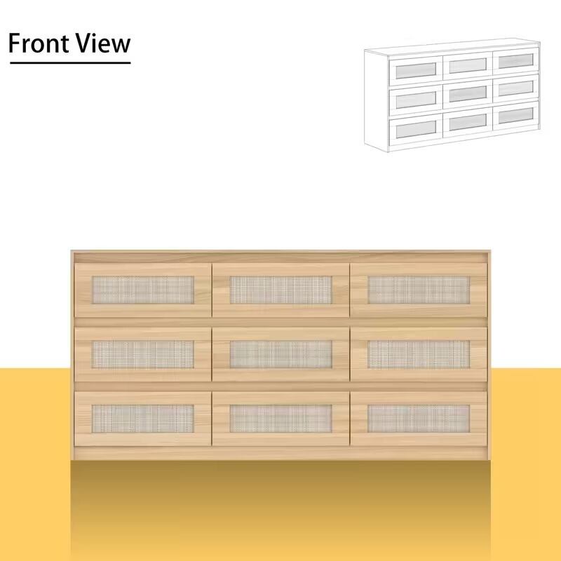 チェスト キャビネット サイドボード ラタンデザイン 木目調 ナチュラル おしゃれ シンプル インテリア 北欧 収納 タンス 大容量 引き出し9つ 3段3列 耐荷重60kg 木質パネル 幅60cm