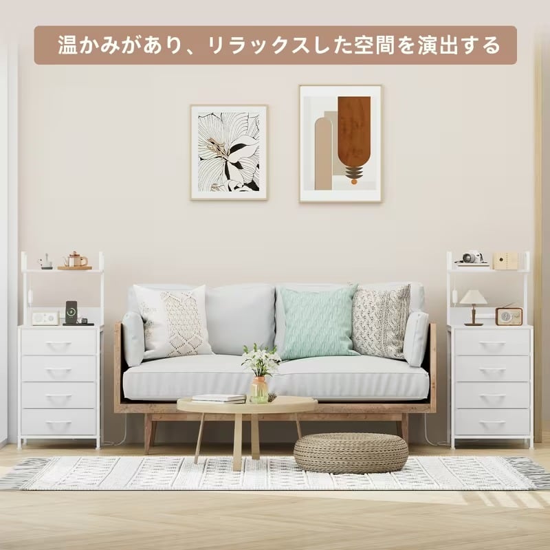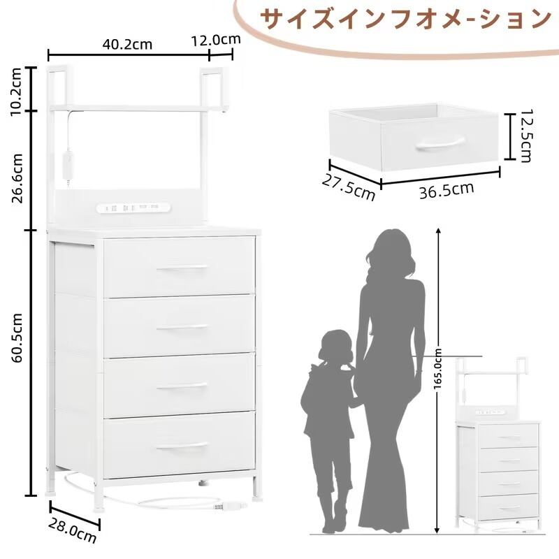 チェスト キャビネット マルチラック 引き出し4段 シェルフ2段 おしゃれ シンプル モダン インテリア 北欧 収納 大容量 省スペース タンス オープン棚 コンセント2箇所 USBポート2個 ブラック ホワイト ヴィンテージ風 木目調 40×28×98cm
