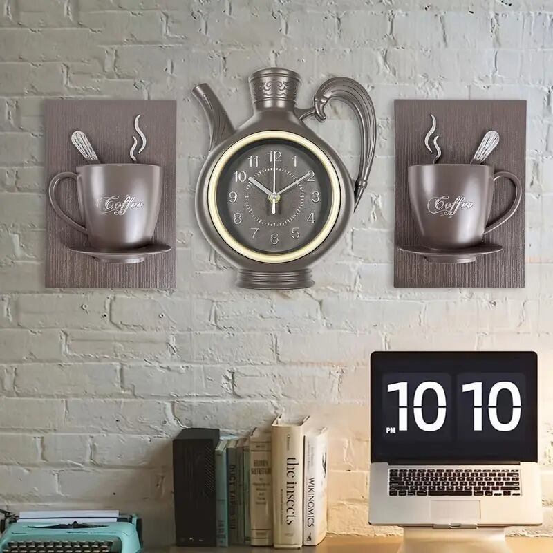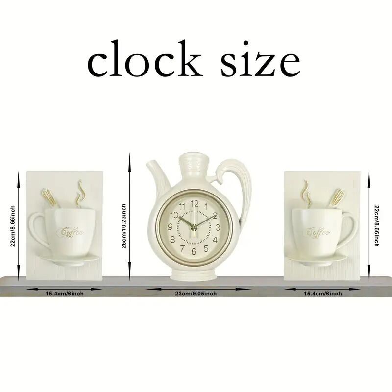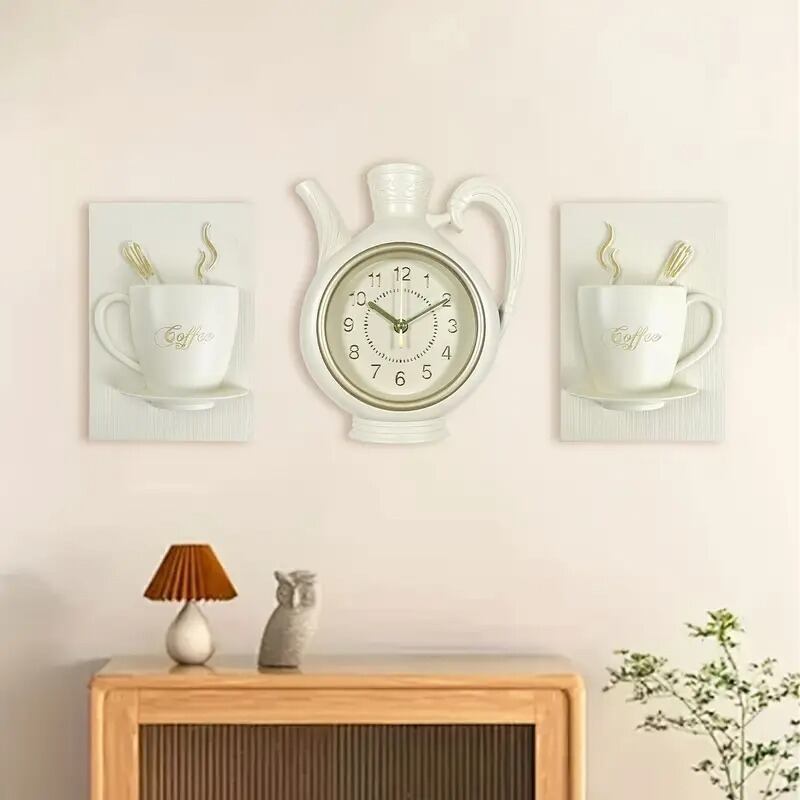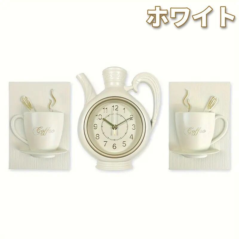 掛け時計 3個セット ケトル コーヒーカップ ポット おしゃれ かわいい シンプル モダン アンティーク風 インテリア 北欧 壁掛け クラシックデザイン リビング 寝室 キッチン オフィス ホームアート 装飾 ギフト 15.4×22cm 23×26cm