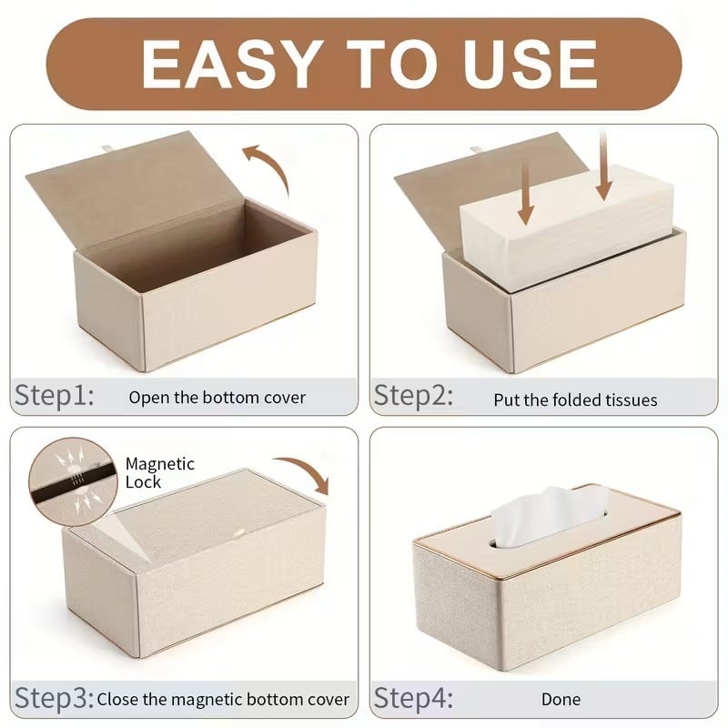 ティッシュボックス ベルベット調 フェイクレザー ゴールドライン エレガント モダン シンプル おしゃれ 高級感 インテリア 北欧 長方形 マグネットロック 水回り可 ベージュ系 合皮 25×13.3×9.6cm