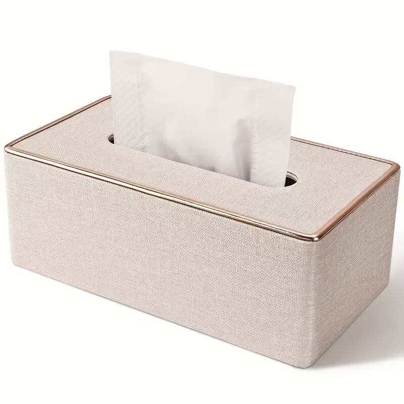 ベルベット調のフェイクレザーにゴールドラインが施されたこのティッシュボックスは、シンプルでありながらもおしゃれなデザインが特徴です。