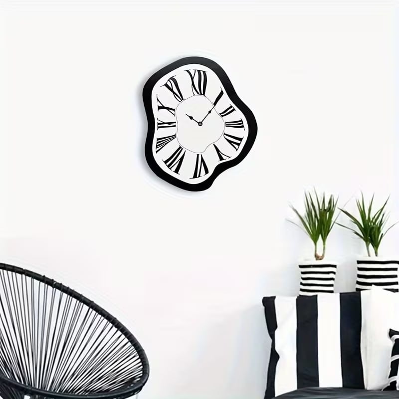 ローマ数字が優雅に歪み、モノトーンの色合いがモダンでおしゃれな雰囲気を演出します。