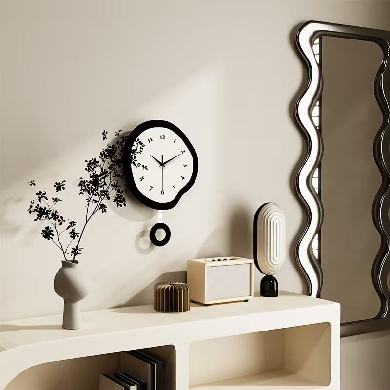 掛け時計 手書き風 歪み ぐにゃぐにゃ モノトーン ユニーク モダン おしゃれ インテリア 北欧 静音 白黒 電池式 アクリル 32.3×43.5cm