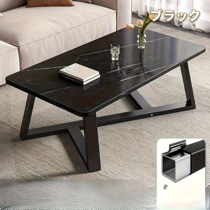 ローテーブル コーヒーテーブル 大理石風 ストーン調 長方形 モダン おしゃれ かっこいい 美しい インテリア 北欧 センターテーブル サイドテーブル マーブル模様 省スペース 組み立て簡単 グレー ホワイト ブラック 金属 木 80×40×43cm