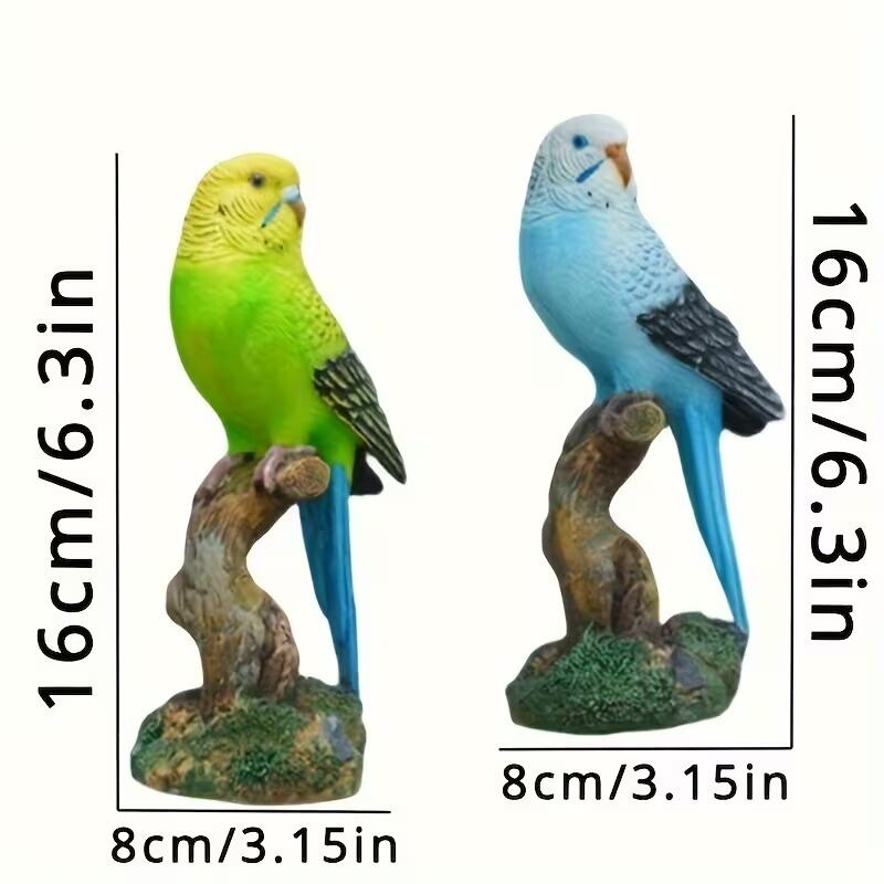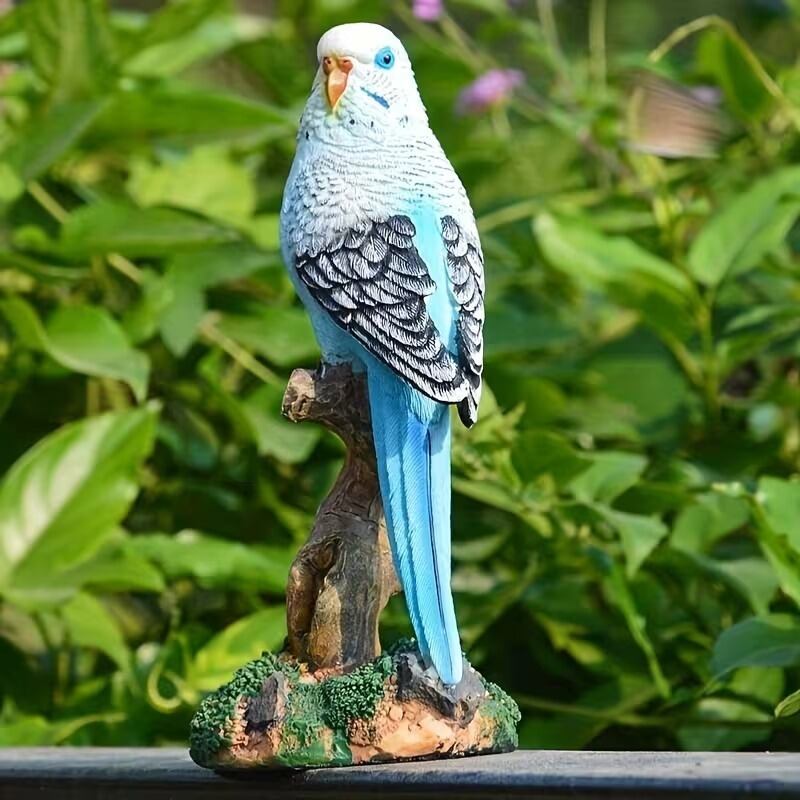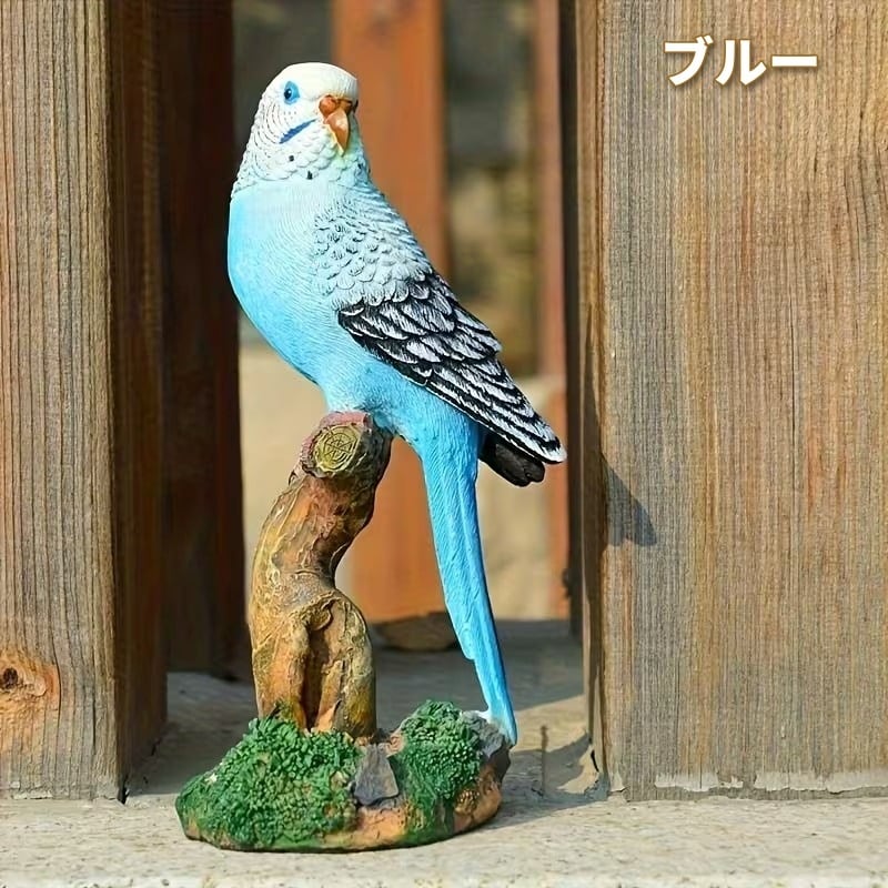 ガーデンオブジェ セキセイインコ 鳥 止まり木 置物 リアル 美しい ナチュラル インテリア 北欧 屋外 室内 庭 花壇 ガーデニング ブルー グリーン 樹脂 8×16cm