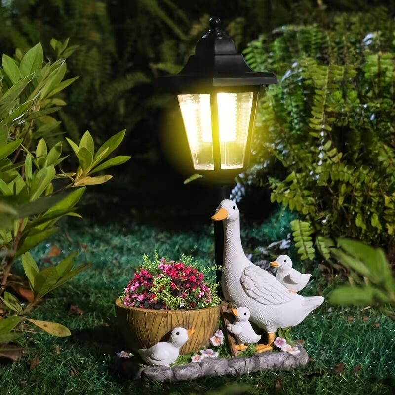 愛らしいアヒルの家族が、あなたの庭を優しく照らします。