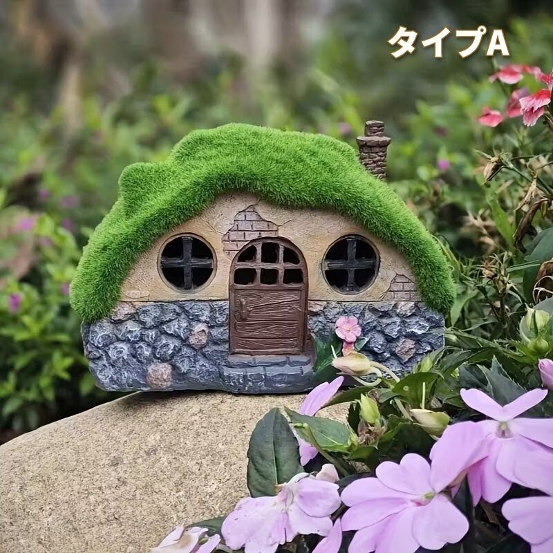 ガーデンライト 妖精の家 人工芝の屋根 花 ヴィンテージ風 可愛い 美しい 幻想的 メルヘン ナチュラル インテリア 北欧 ソーラー充電 屋外 庭 花壇 ガーデニング オブジェ 間接照明 自動点灯 太陽光発電 樹脂 18.5×7×12cm