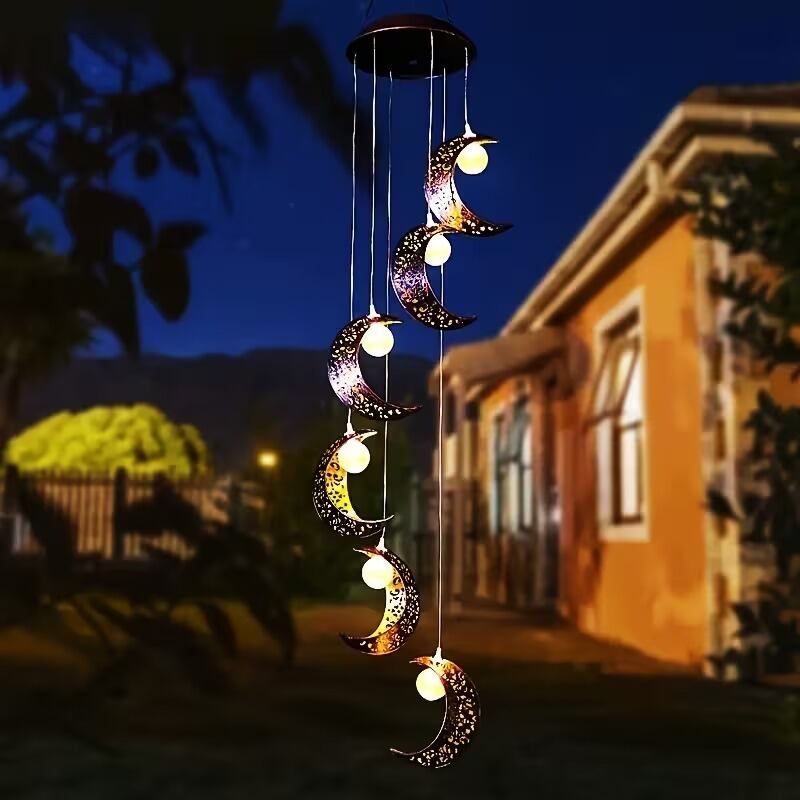 ガーデンライト 三日月モチーフ 光るボール ウィンドチャイム 吊り下げ式 おしゃれ きれい 美しい 幻想的 インテリア 北欧 ソーラー充電 屋外 庭 花壇 テラス 色変化 ランプ 照明 太陽光発電 揺れる プラスチック 幅12.5cm