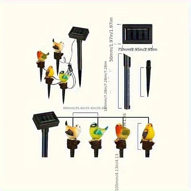ガーデンライト 小鳥 ロビン 4羽セット 埋め込み式 リアル ナチュラル 可愛い 美しい インテリア 北欧 ソーラー充電 屋外 庭 花壇 ガーデニング オブジェ 連結タイプ 間接照明 自動点灯 太陽光発電 樹脂