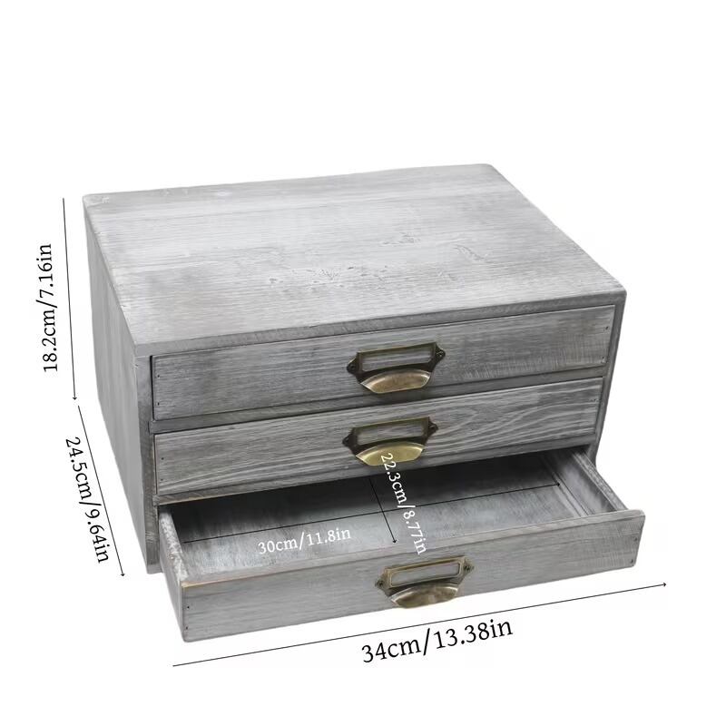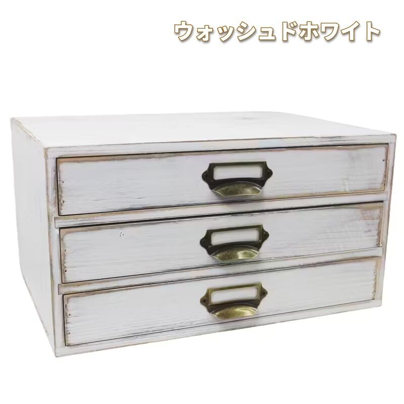 小物入れ ヴィンテージ風 引き出し 三段 木製 おしゃれ ナチュラル 可愛い インテリア 北欧 デスクオーガナイザー シャビー 収納 省スペース グレー ナチュラル ブラック ウォッシュドホワイト 34×24.5×18.2cm