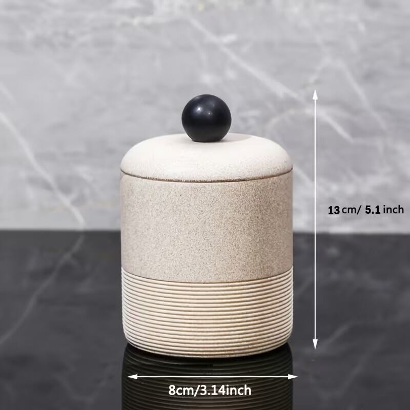 小物入れ 綿棒ケース ストーン調 蓋付き ボール型持ち手 モダン おしゃれ ナチュラル シンプル 可愛い インテリア 北欧 収納 卓上 円柱型 アイボリー系 プラスチック 8×13cm