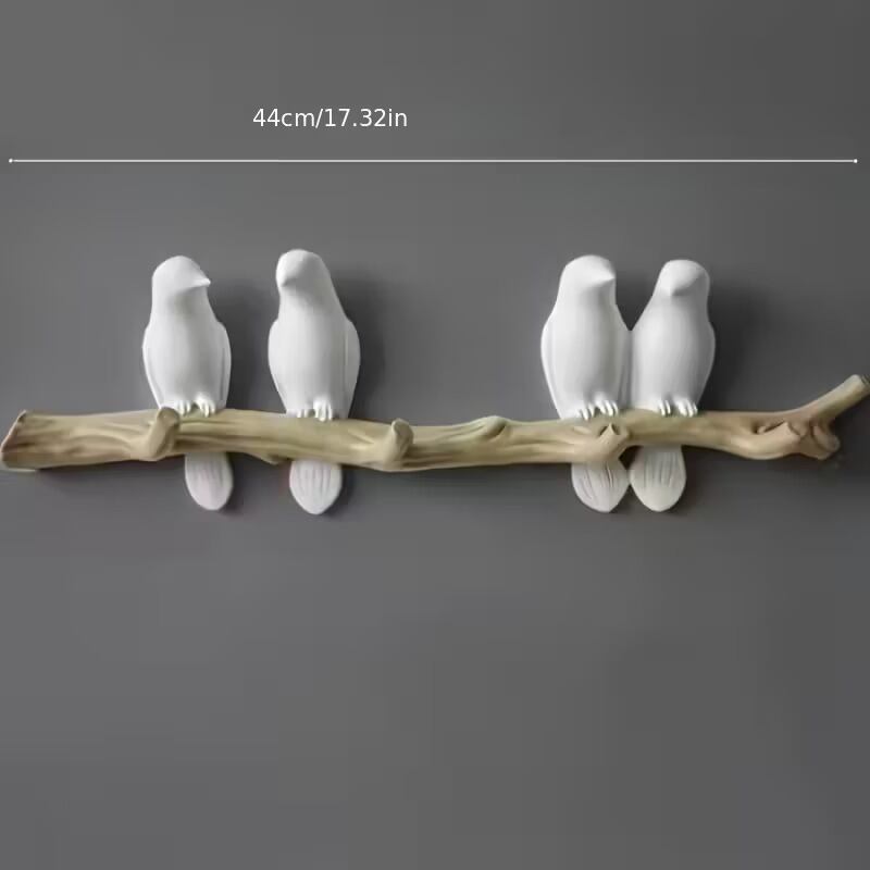 置物 オブジェ 小鳥 4羽 壁掛けフック 止まり木 モダン おしゃれ シンプル 美しい 可愛い インテリア 北欧 アート 抽象 ディスプレイ 装飾 吊り下げ収納 ホワイト系 樹脂製 44cm