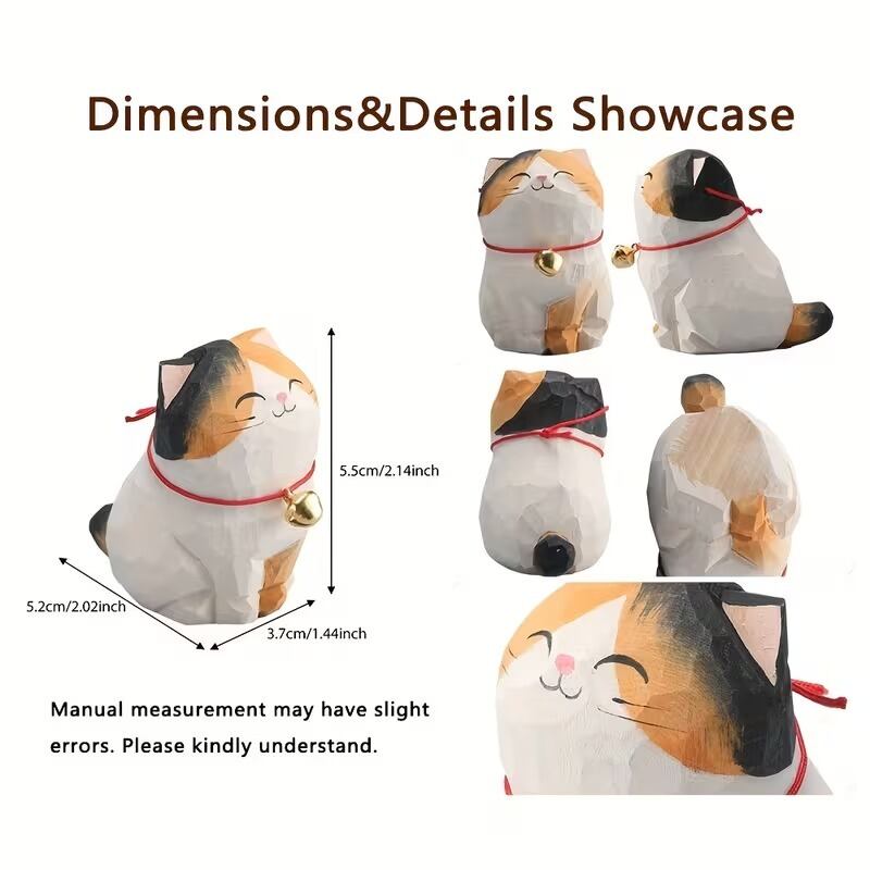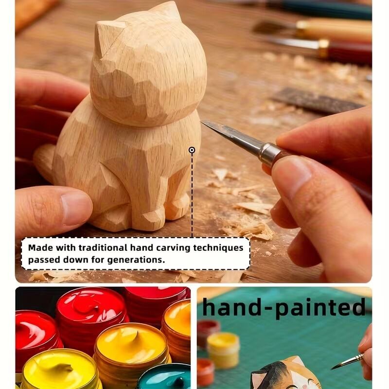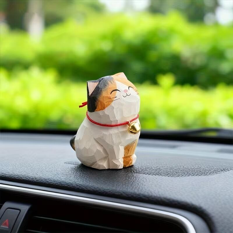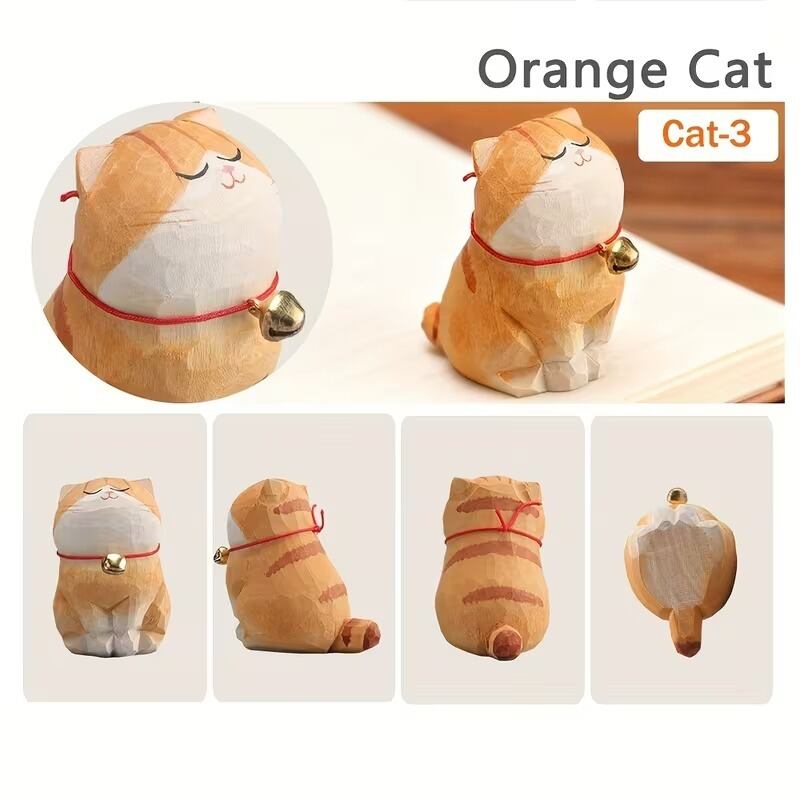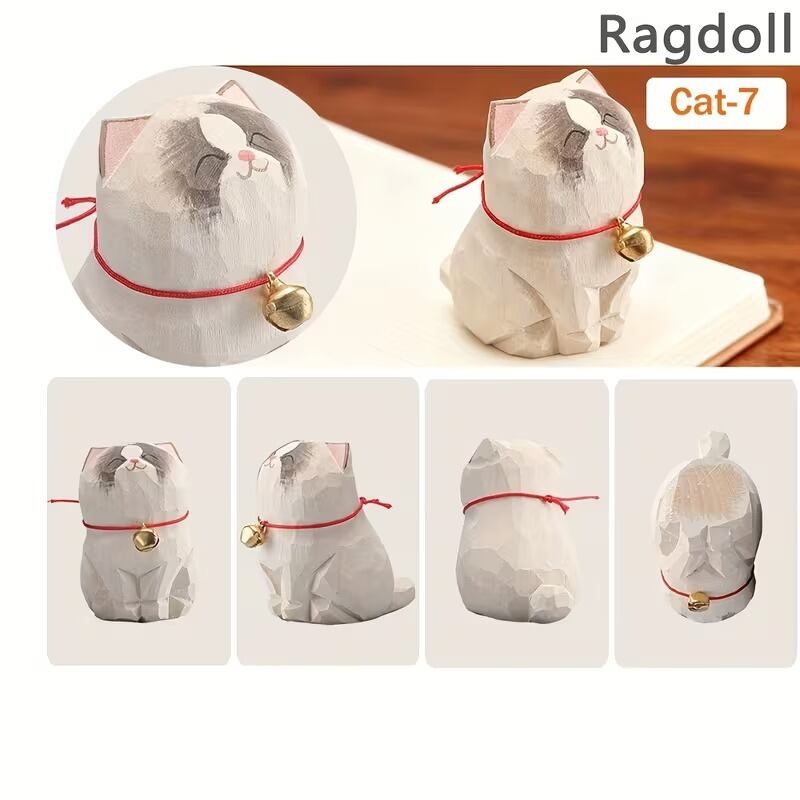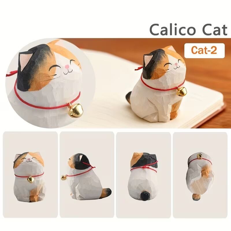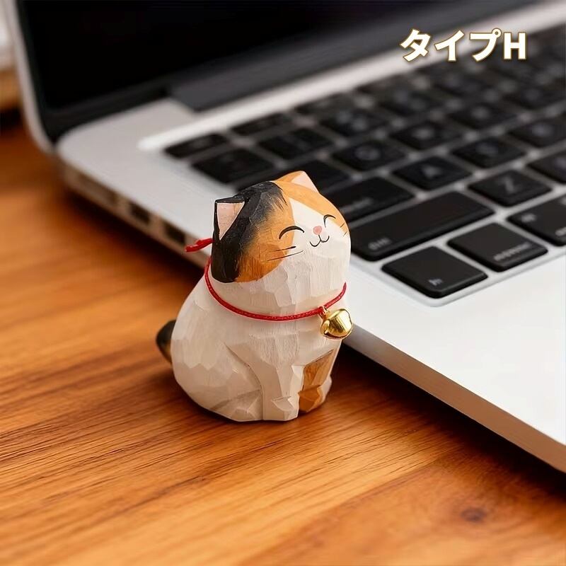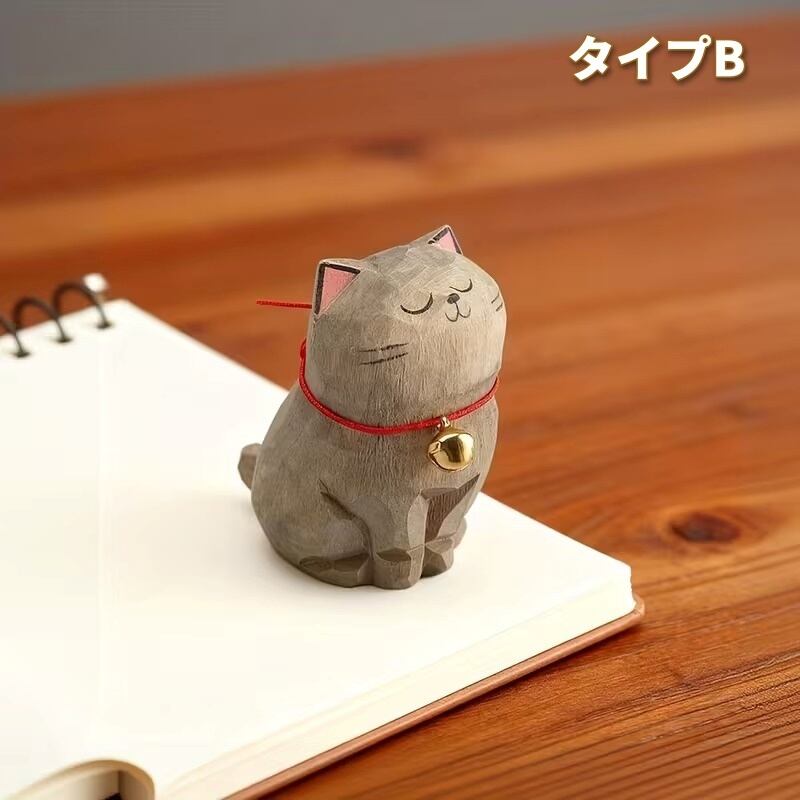 置物 オブジェ お座り猫 鈴付き 木彫り 可愛い ナチュラル おしゃれ インテリア 北欧 ディスプレイ 装飾 手作り ハンドペイント 8種類 選べる 木製 3.7×5.2×5.5cm