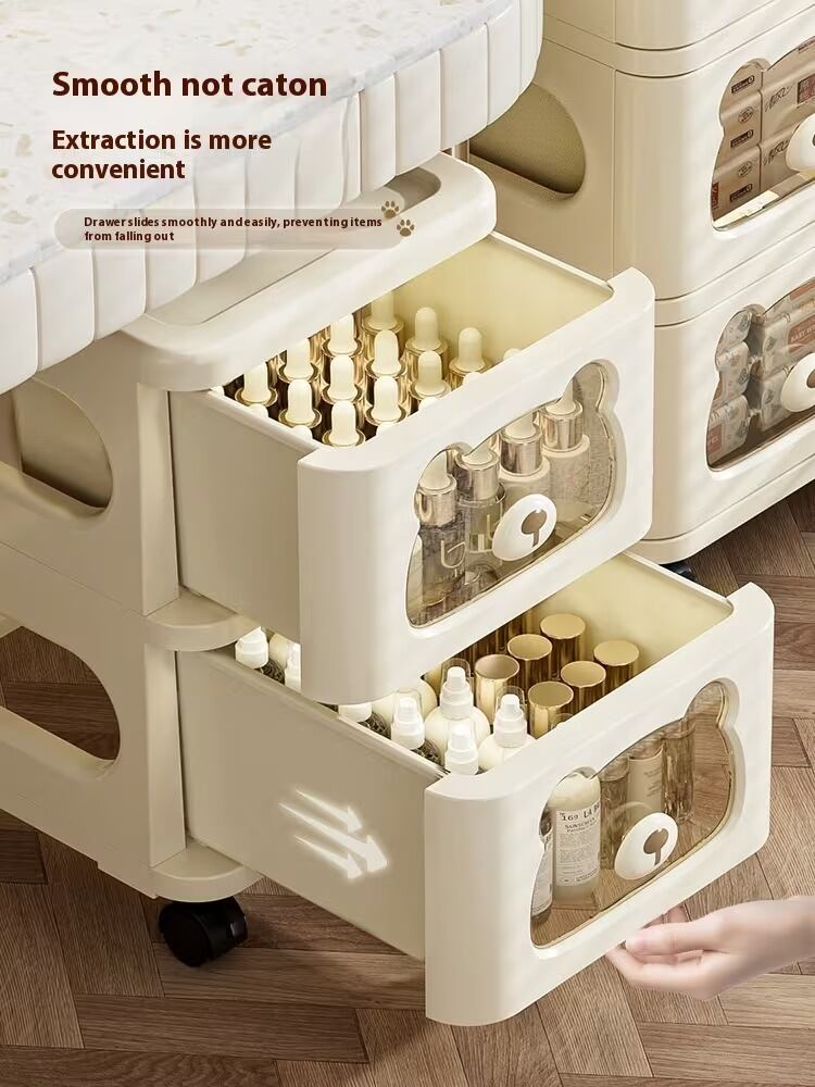 チェスト キャビネット クマの顔の窓 引き出し2段 キャスターワゴン 可愛い おしゃれ インテリア 北欧 収納 中身が見える クリーム色 プラスチック 30.2×35×48.3cm