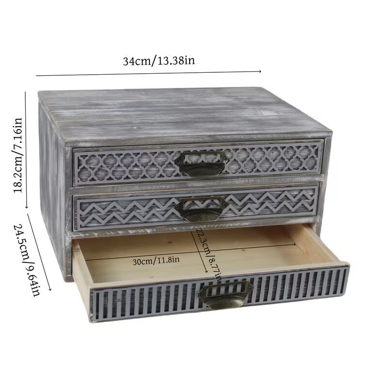 チェスト キャビネット 花柄プリント 木目調 ヴィンテージ風 ナチュラル おしゃれ インテリア 北欧 収納 卓上 3段引き出し シャビー ラスティック 幾何学模様 選べるデザイン ブラック グレー ブラウン ホワイト 木製 34×24.5×18.2cm