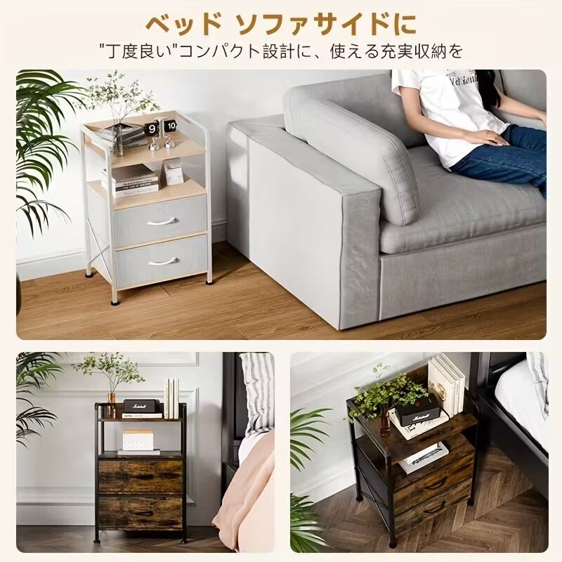 チェスト キャビネット マルチラック 木目調 ヴィンテージ風 モダン おしゃれ シンプル インテリア 北欧 収納 大容量 省スペース オープンラック 2段棚 2段引き出し オーク ウォールナット 40×29×61cm