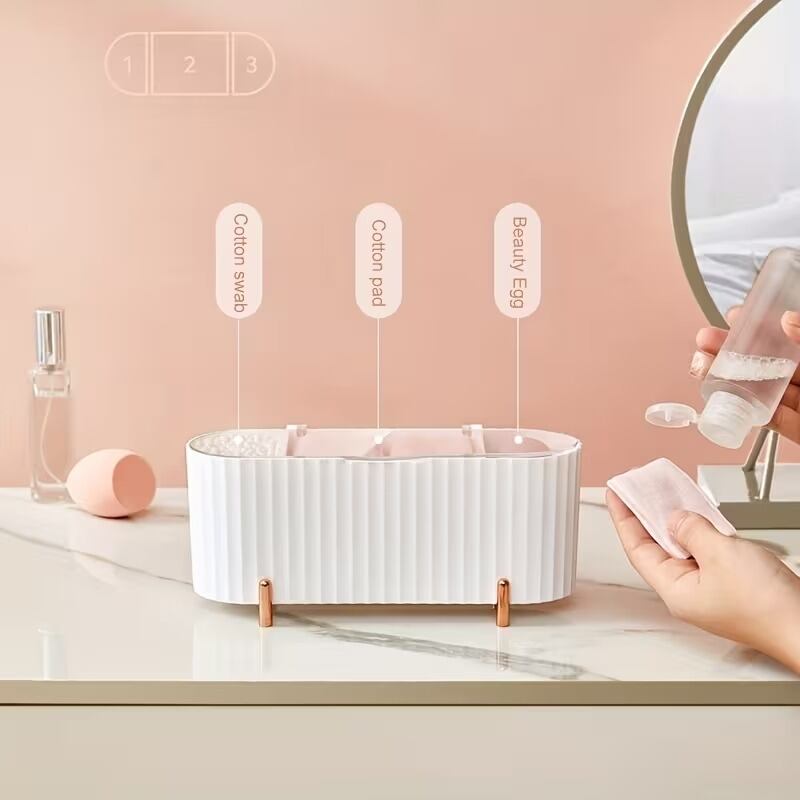 卓上に置いても場所を取らないコンパクトサイズで、綿棒入れやコットンケースとしても活躍。
