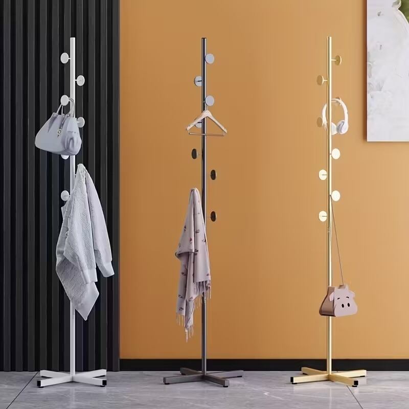 ハンガーラック コート掛け ポールスタンド ドットデザイン パイプハンガー おしゃれ モダン シンプル インテリア 北欧 衣類収納 省スペース スリム 玄関 帽子掛け シングル 直立型 ゴールド ブラック ホワイト 金属製 43×168cm