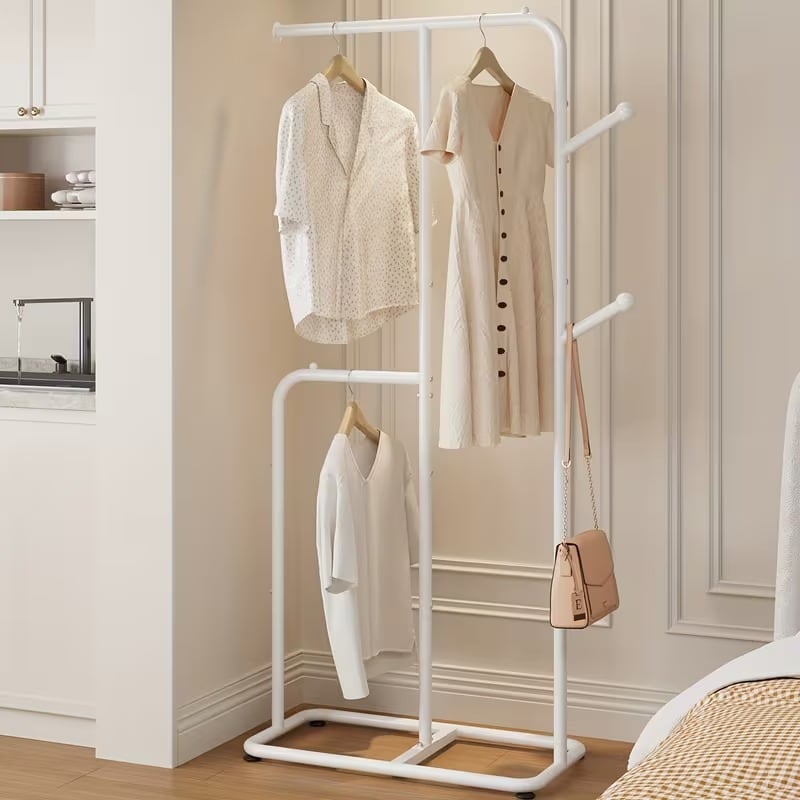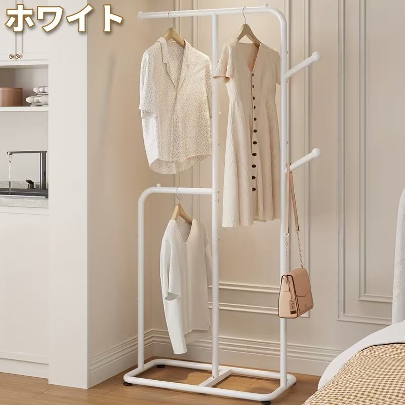 ハンガーラック 衣類ラック フック付き スリム省スペース おしゃれ かわいい ナチュラル アンティーク風 ミニマル インテリア 北欧 コートラック 洋服掛け 収納 ベッドルーム 省スペース 多機能 ホワイト ブラック 73.6×32×175cm