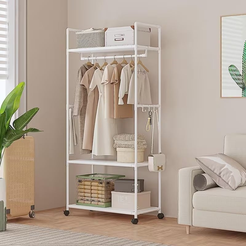 移動式なので、どこにでも簡単に移動できる多機能な衣類ラックです。