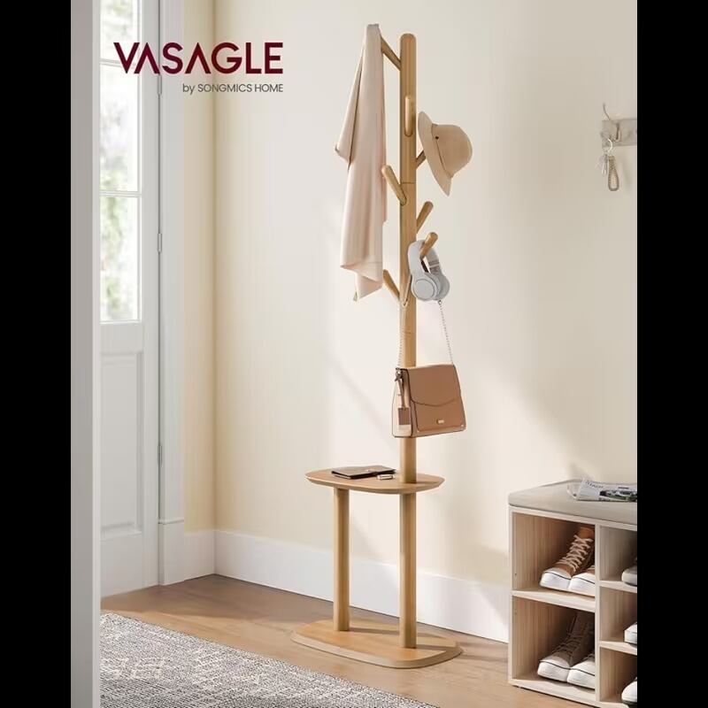 8つのフックが、コートや帽子、バッグを優雅に収納します。