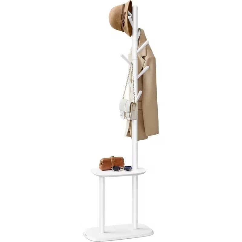 ハンガーラック コートハンガー 8フック付き おしゃれ かわいい ナチュラル アンティーク風 シンプル ミニマル インテリア 北欧 帽子掛け バッグ掛け 衣類収納 玄関収納 省スペース 金属製 ホワイト ウォールナット ナチュラル 30×50×170.7cm
