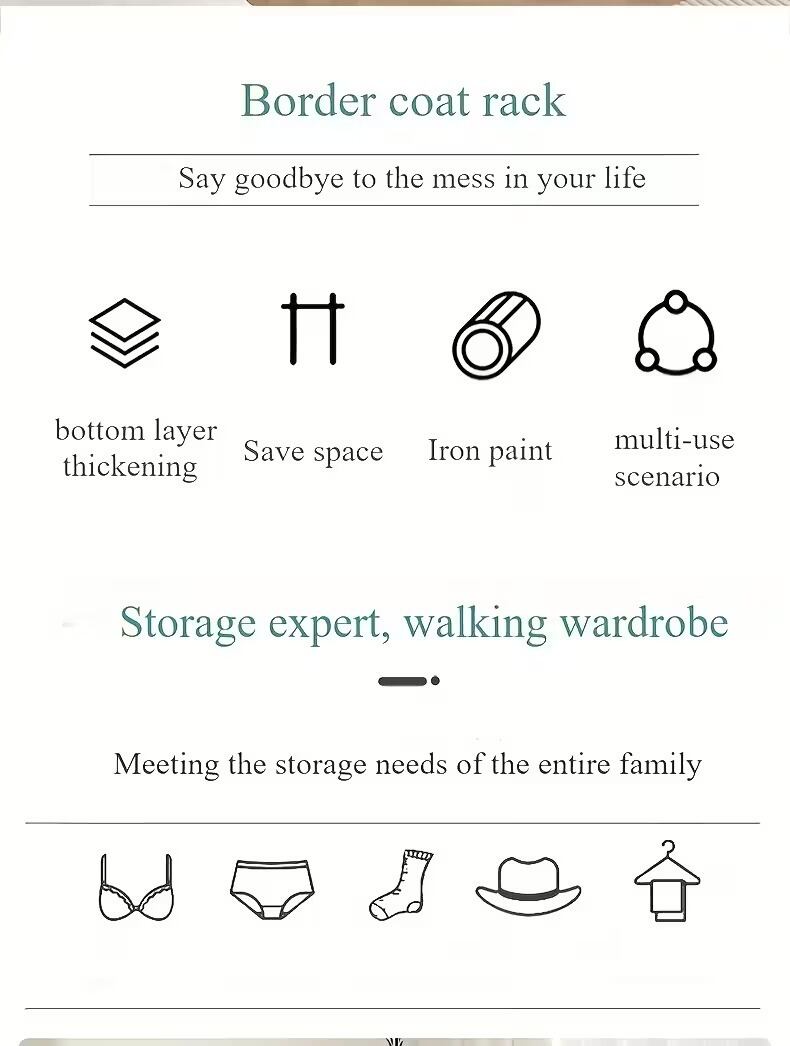 ハンガーラック コートラック モダン フック付き おしゃれ かわいい ナチュラル アンティーク風 ミニマル インテリア 北欧 収納 多機能 省スペース 玄関 バッグ掛け 寝室 リビング 衣類収納 金属製 ブラック 30×170cm